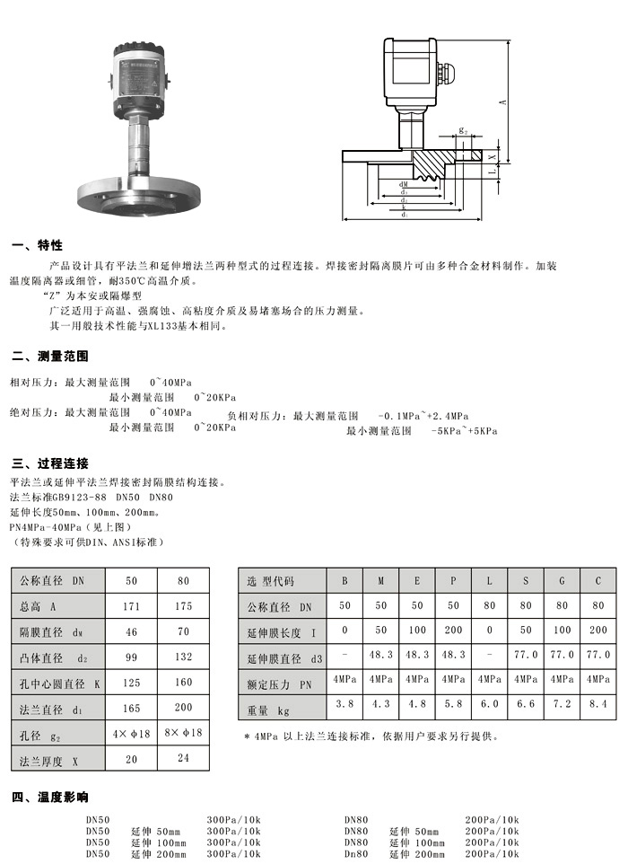 XL-133B法蘭式膜片壓力變送器
