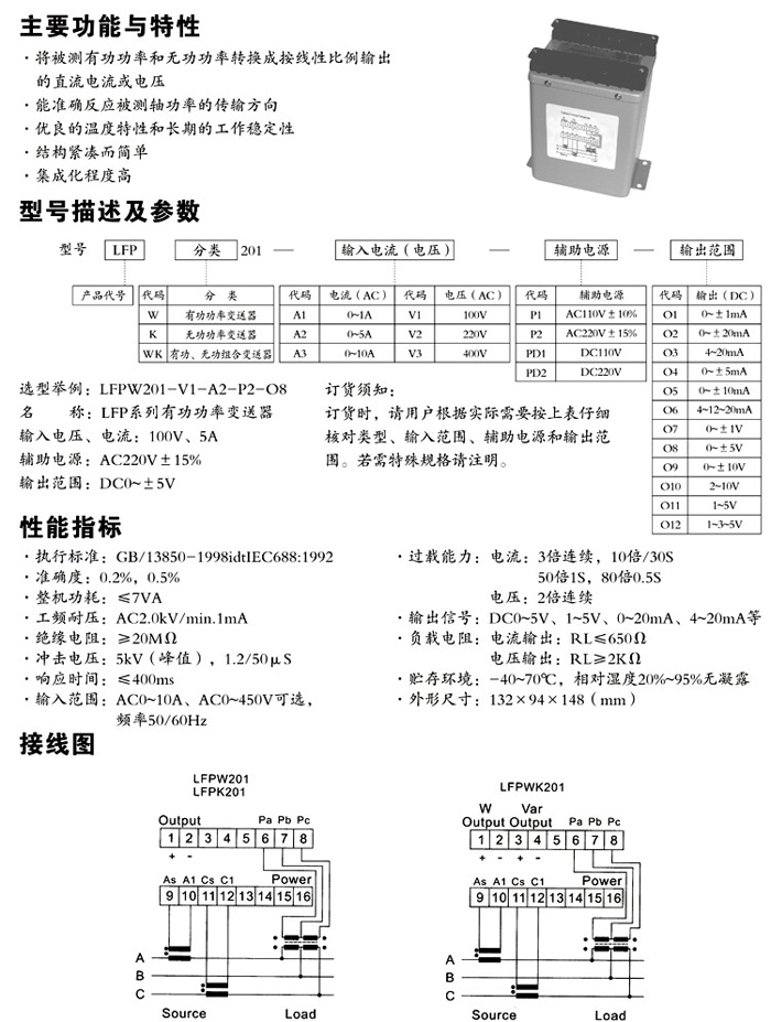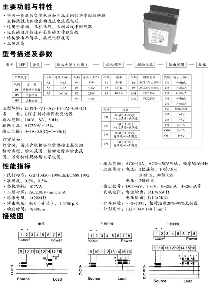 LFP系列有功(無功)功率及功率因數(shù)變送器