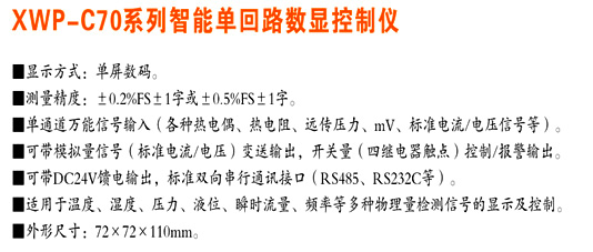 XWP-C70系列智能單回路數(shù)顯控制儀