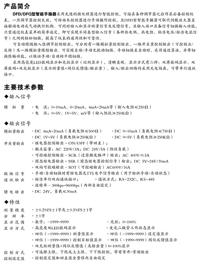 XWP-ND735系列智能DFD/DFQ型手操器